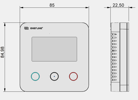 Enerline Silent LCD-huonetermostaatin tyylikäs ulkokuori pitää sisällään seuraavat tekniset yksityiskohdat: