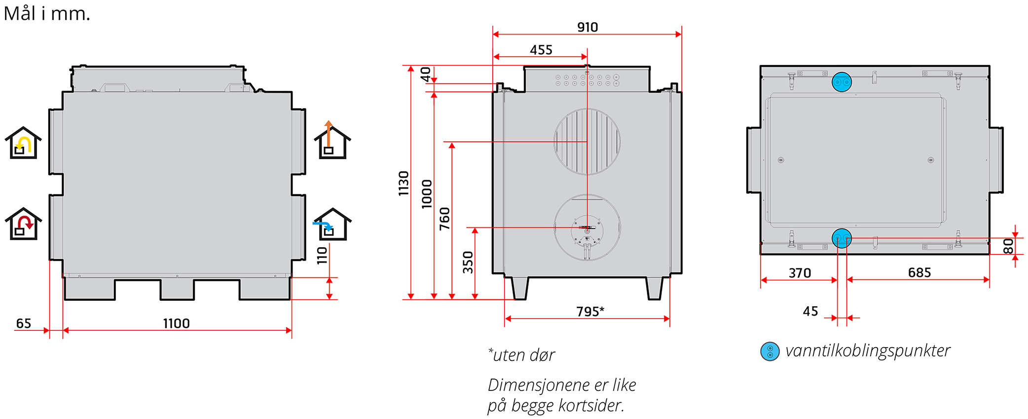 Jälkilämmityspatteri (sähkö/vesi) toimitetaan yksiköiden mukana ja