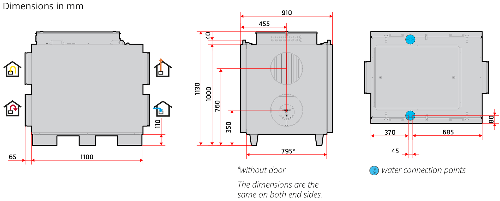 Jälkilämmityspatteri (sähkö/vesi) toimitetaan yksiköiden mukana ja