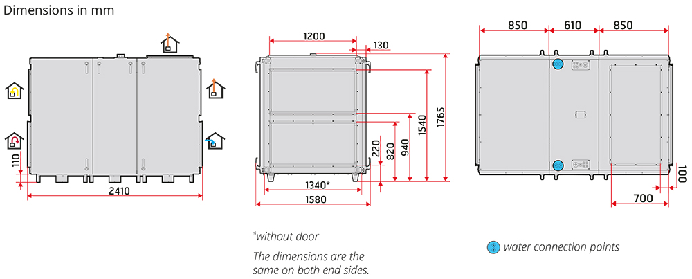 Jälkilämmityspatteri (sähkö/vesi) toimitetaan yksiköiden mukana ja