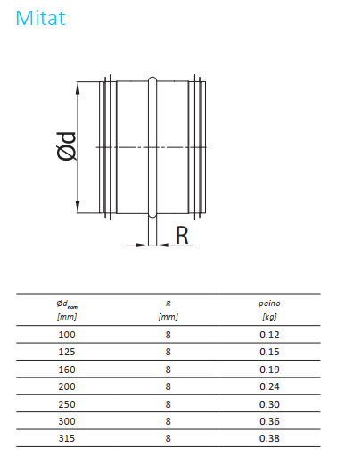 LYPN-sisäliittimiä löytyy kanavakoossa ø100-250mm.