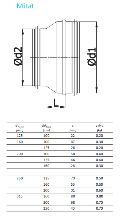 Heatco MYN-muuntoyhde kanavalle ja MYNO-muuntoyhde osalle on tarkoitettu kanavakoon muuntamista varten.