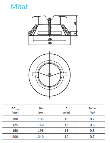 Heatco ilmanvaihtojärjestelmän venttiilit ovat metallista valmistettuja päätelaitteita.