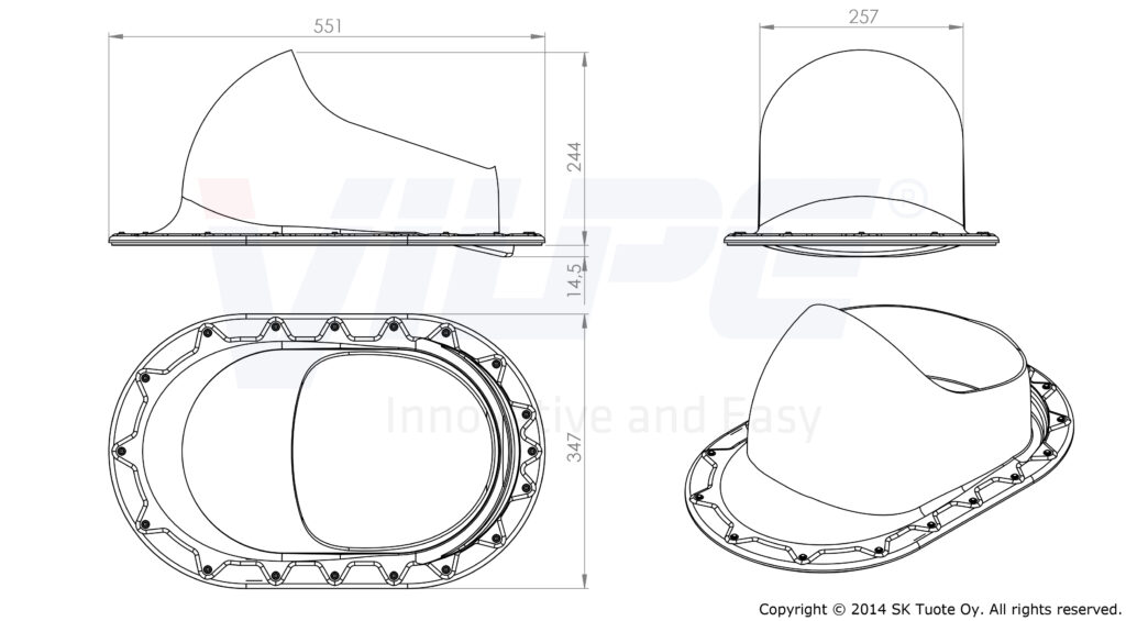 piippukumille. XL Classic -läpiviennin leveys on 347 mm ja pituus 550