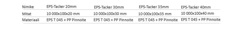 Enerline EPS-lattiaeristeen tekniset tiedot: